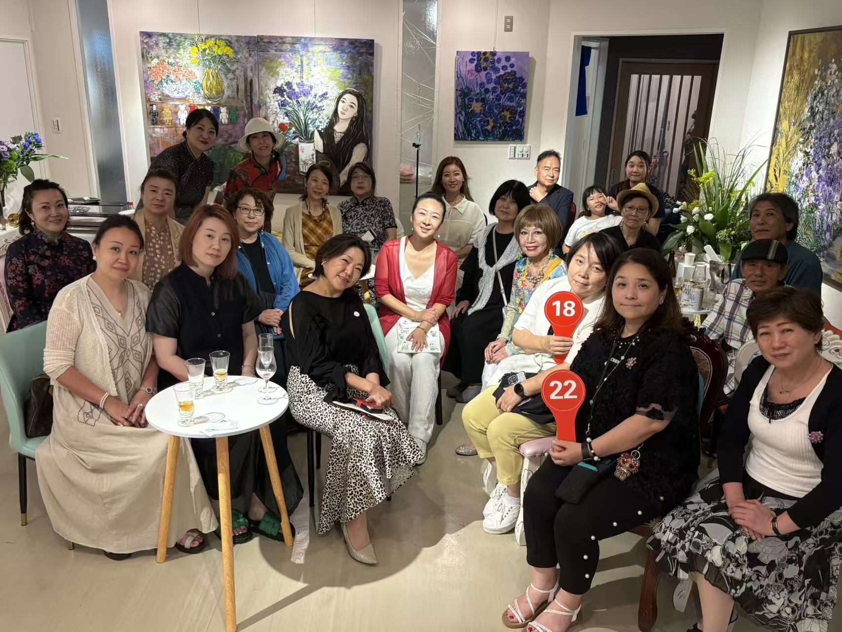 李娜さんと堀内さんの出会いは、李さんのチャリティー活動。約10年前に来日した李さんは、画家として作品を生み出すかたわら、大阪黒門市場に画廊を開き、芸術交流イベントを開いていた。新型コロナウイルス流行の際は画廊運営に大きな影響が出たが、日本で知り合った芸術家たちと協力し合い、「世界の画家を元気づける」をテーマに2年にわたりチャリティ形式の展示会を開いた。展示作品を販売しその収益の一部を大阪府を通じて支援団体に寄附をした。その後もより多くのアーティストが参画し、李さんは志を同じくする仲間を増やしていった。堀内さんもその仲間の一人だ。