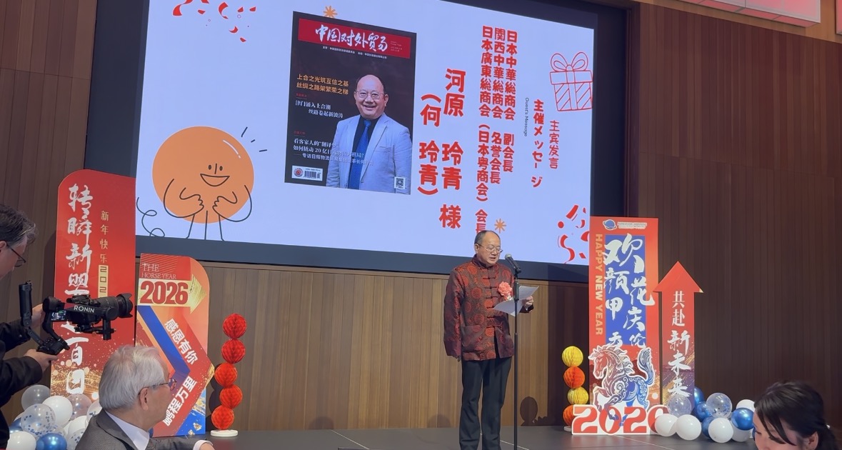 何さんが60歳の還暦を迎えた年に生まれた浩君。何さんは挨拶の中で今は亡き両親と妻胡丹丹さんへの感謝を述べたあと、自分自身の半生を振り返り「一滴の水は海に流れ込んで初めて存在し続けることができる。人は集団に溶け込むことで初めて真の力を発揮できるのです。私が日本で長年努力を重ね、孤独から現在の仕事と家庭を築くことができたのは、在日華僑コミュニティの相互支援と、中国と日本の友人たちの力強い支えがあってこそ」と語った。人々の間の友好こそが日中関係の基盤であると確信しており、在日華僑のリーダーとして在日華僑コミュニティを守り、日中友好の架け橋となる責任を負っていると述べた。