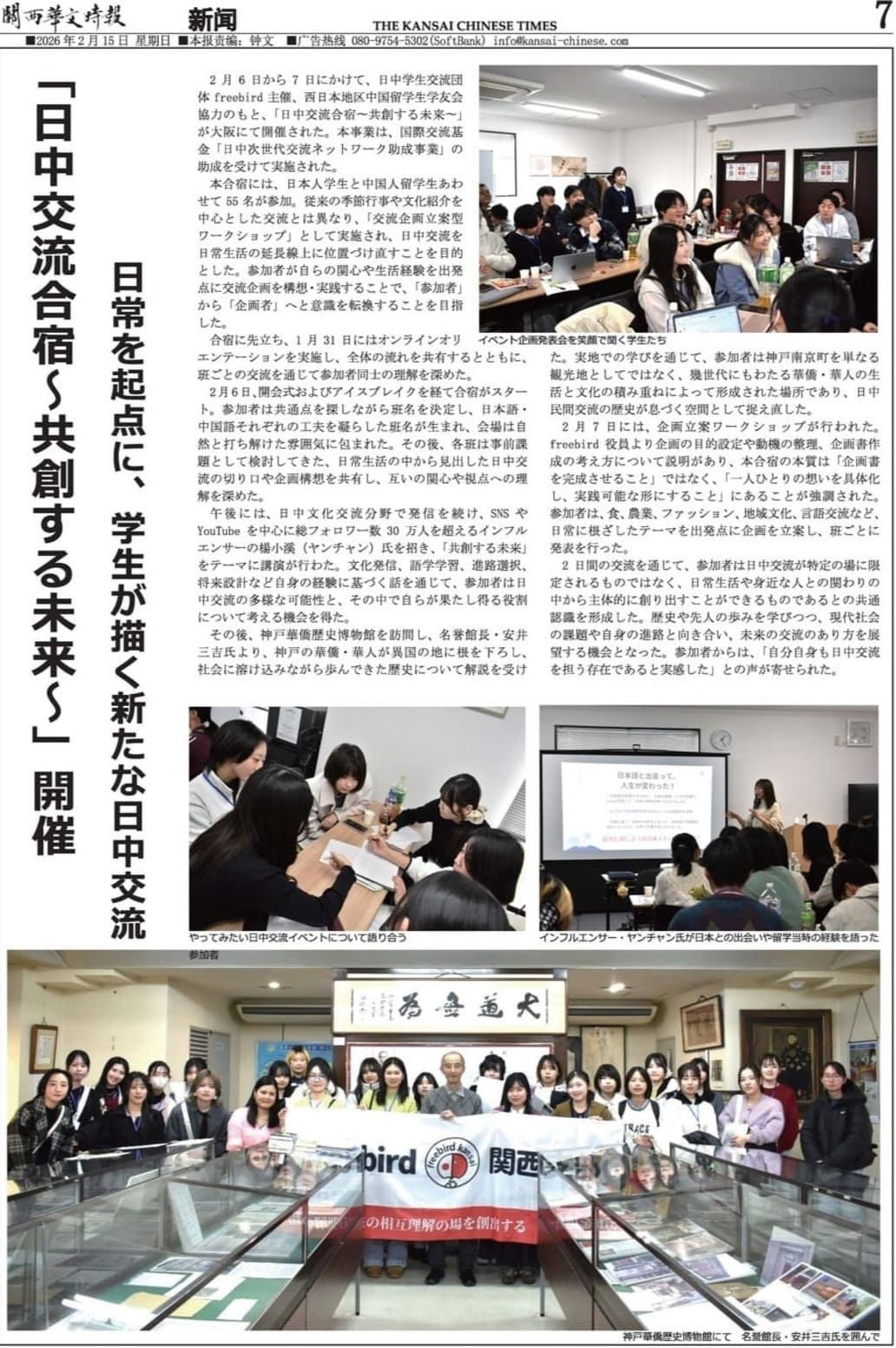 「関西華文時報」は2002年に関西地区の華僑・華人向けの中国語新聞として創刊。日中交流情報や華僑、華人の動態、中国人向け求人・進学情報などを掲載し、地元に密着した情報誌として関西地区在住の中国語話者に絶大な支持を得てきました。
